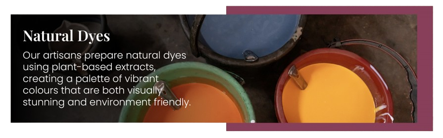 Our artisans dip the carved wooden blocks into the vibrant natural dyes and stamp each motif onto the fabric.